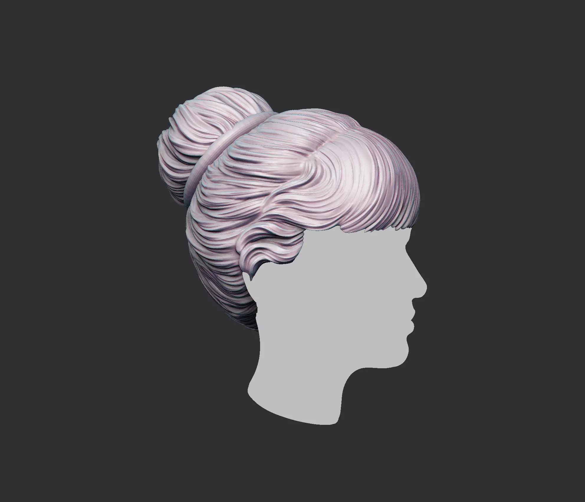 BUN Hairstyles ready for 3D printing, you can use this in the Zbrush as ZTL file or obj and stl....I am happy to answer any questions you might have about the model.**PLEASE NOTE - **the head used in renders is not included.included files: obj-stl-ztl-fbx-3mf-wrl...and if you need other formats, contact me.
