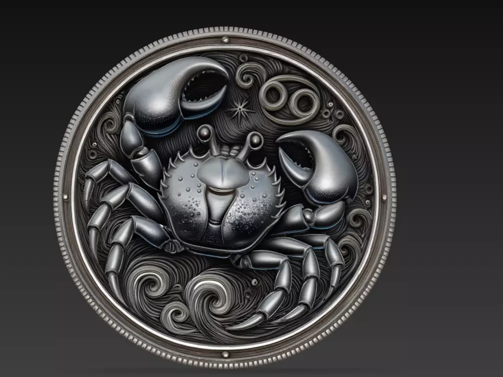 Perfect for CNC carving, 3D printing, or wall decoration, this design blends astrological symbolism with fine craftsmanship.Its metallic reflections and detailed curvature make it ideal for collectors, zodiac art lovers, and artistic render compositions.