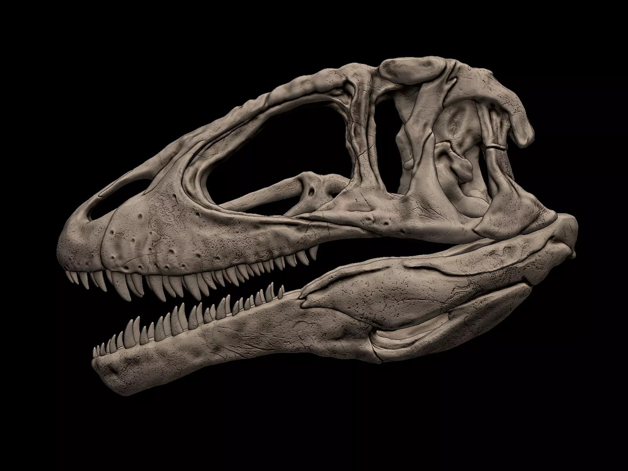 This is a life size 3d digital model skull of a Carcharodontosaurus. OBJ, ZTL, PLY, FBX and STL files. jaw is seperated.