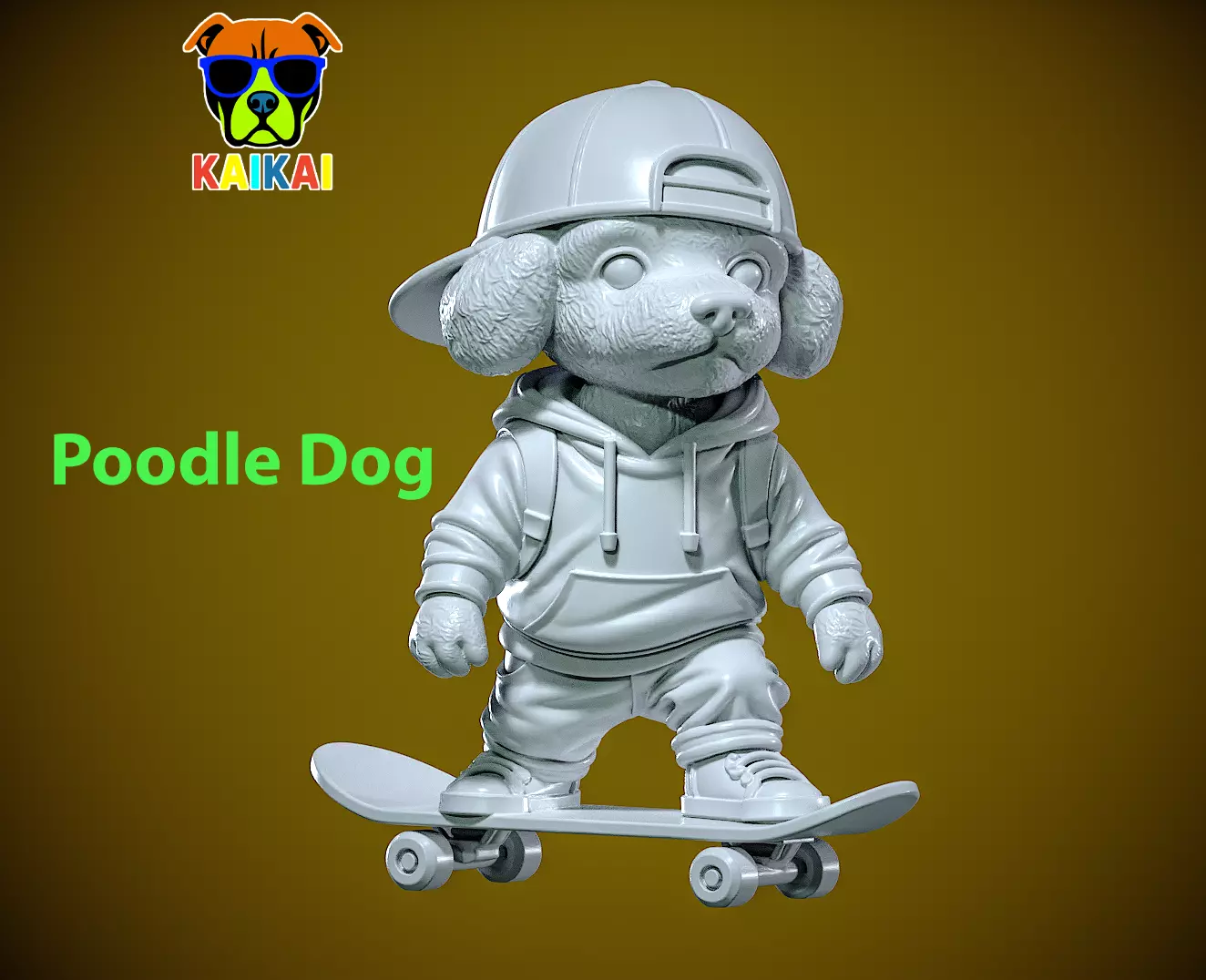 Size: Poodles come in three main varieties: Toy (small), Miniature (medium), and Standard (large).Toy Poodle: Approximately 24–28 cm tall, weighing 2–4 kg.Miniature Poodle: Approximately 28–38 cm tall, weighing 7–8 kg.Standard Poodle: Over 38 cm tall, weighing 20–32 kg.Body proportions: Well-proportioned, rectangular body, deep chest, straight back.Head and face characteristicsHead: Slender, in proportion to the body.Eyes: Oval, dark brown or black, creating an intelligent, alert look.Ears: Long, drooping, covered with curly or wavy hair.Coat and colorCoat: Thick, curly, does not shed much - easy to style. Often trimmed to create an artistic shape.