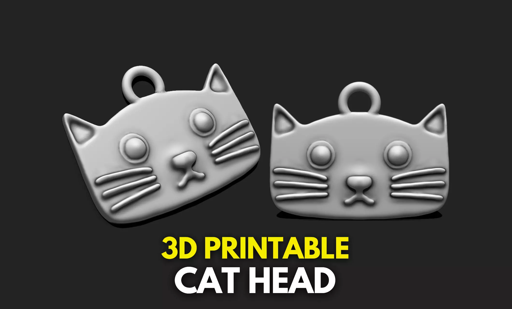 Cat Head Pendant STL File for 3D Printing - Keychain 3D print model