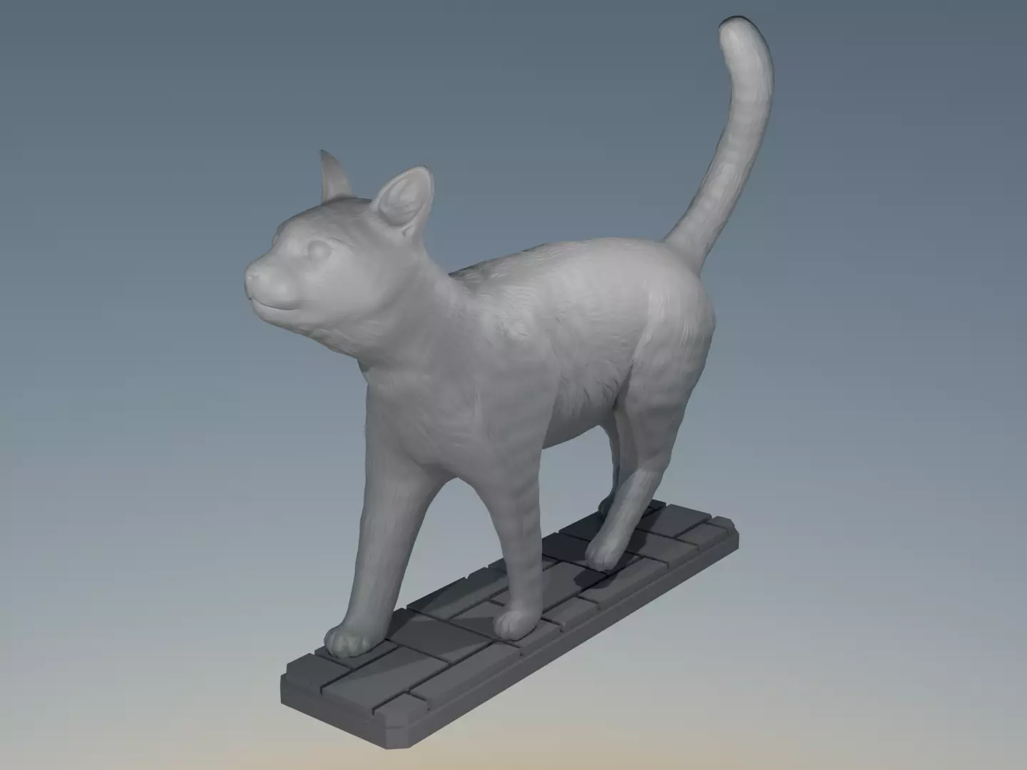 A high-poly model of cat looking mildly upward while walking.