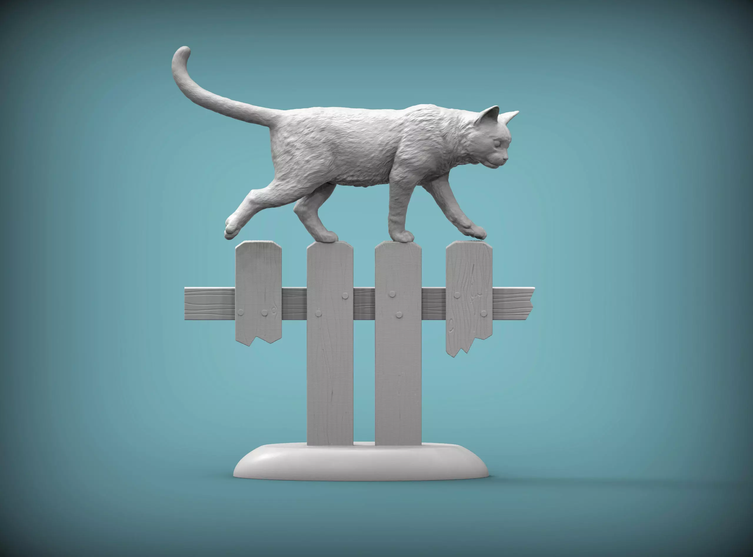 Sculpture of a cat walking along a fence for 3D printing. The stl file is verified by netfabb. Model height 100 mm. The size can be easily changed in any printing program. The model is divided into two parts for ease of printing. Added version of the cat without a fence. This cat might look interesting on your shelf or fence. If you love cats, you can use this model to decorate your interior or garden. This can be a great gift for your friends or loved ones. Sale of electronic files of this model is strictly prohibited.