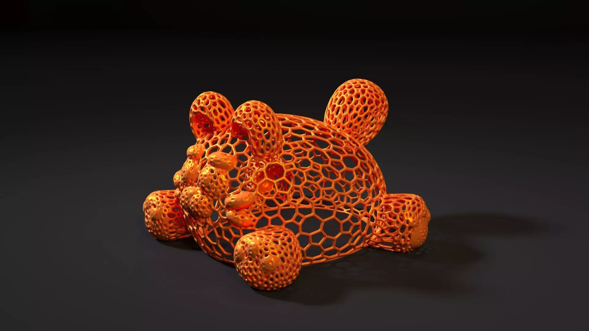 The cat has unique shapes and textures, thanks to the characteristicVoronoi structure, creating a light and airy effect. These patterns makethe model visually dynamic and add to its originality. The dimensions of the modelare carefully thought out, allowing it to be used as a statuette or as aa decorative element on a shelf, table or windowsill.
