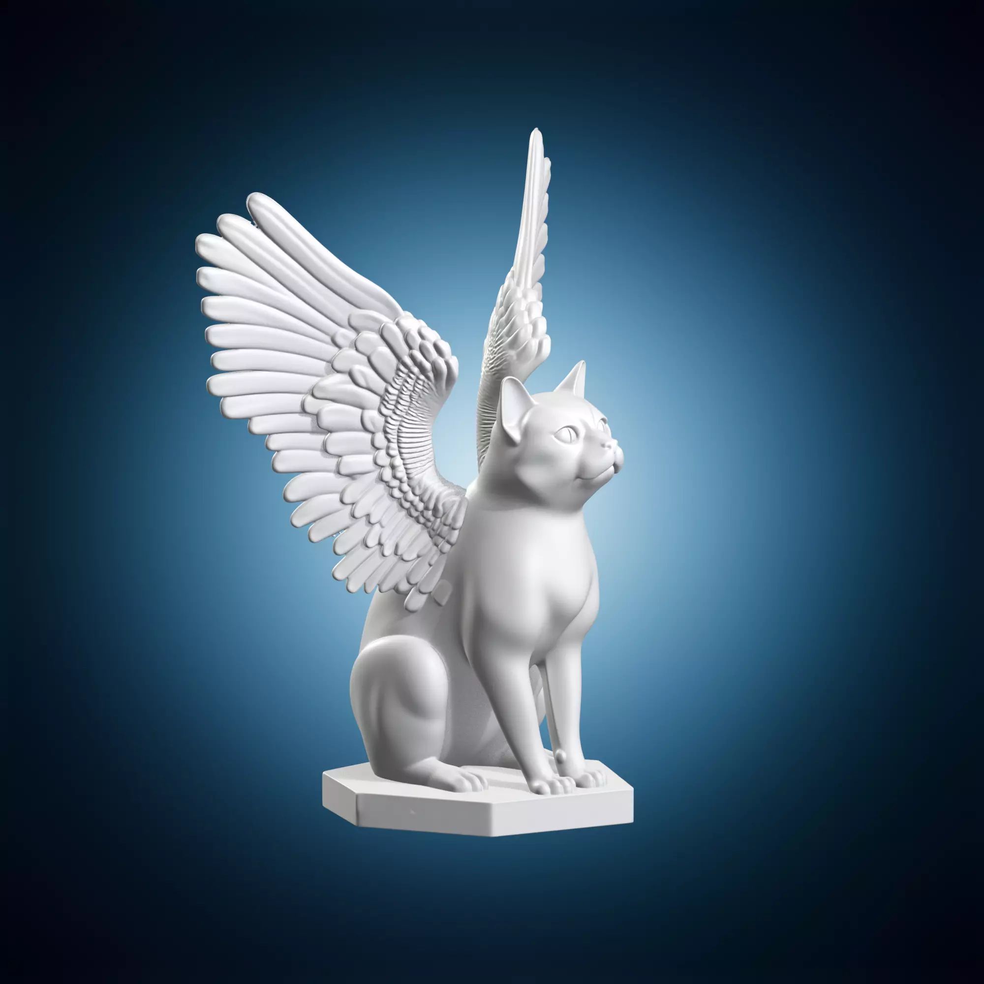 A detailed digital 3D model of a mythical cat creature with beautiful wings and intricate details perfect for sculptors architects designers and artists to create artistic projects sculptures models or architectural designs. This 3d model can be used in various fields including architecture art fashion jewelry design and other creative industries. It is suitable for both personal use and commercial purposes.