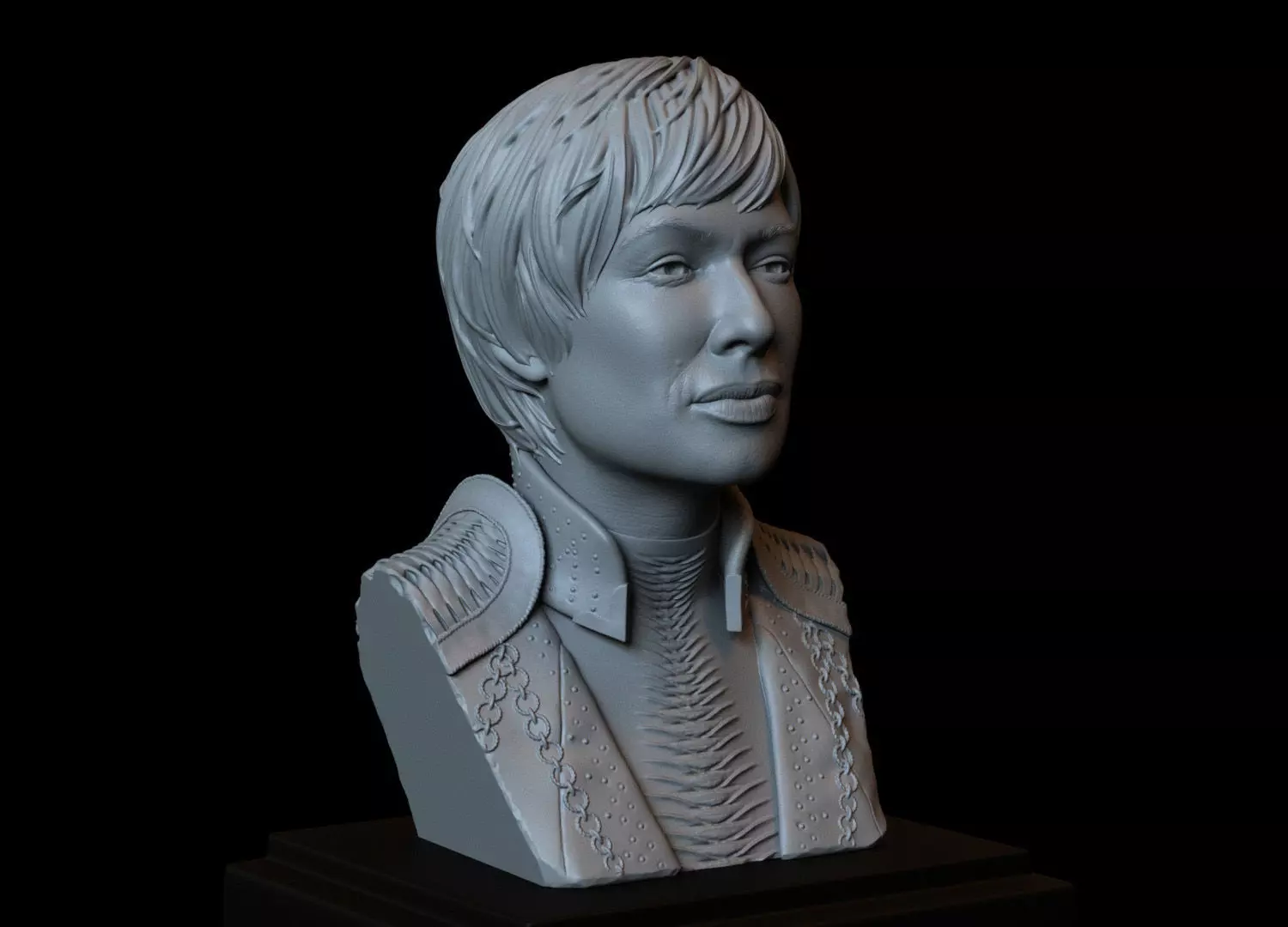 3d printable bust/portrait (fan art) of Cersei Lannister (Lena Headey) from Game of Thrones TV series.