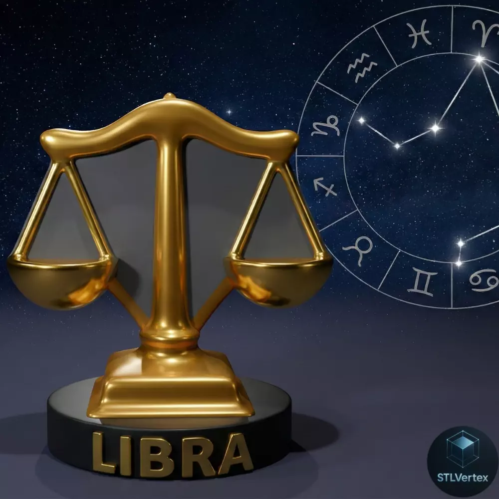 Chibi figurine of the Libra sign, represented by a perfectly balanced two-pan scale. The design maintains a smooth finish and a simplified, compact style. The word LIBRA is written in capital letters on the circular base of the figurine. This figurine was created with the intention of becoming a candle mold.