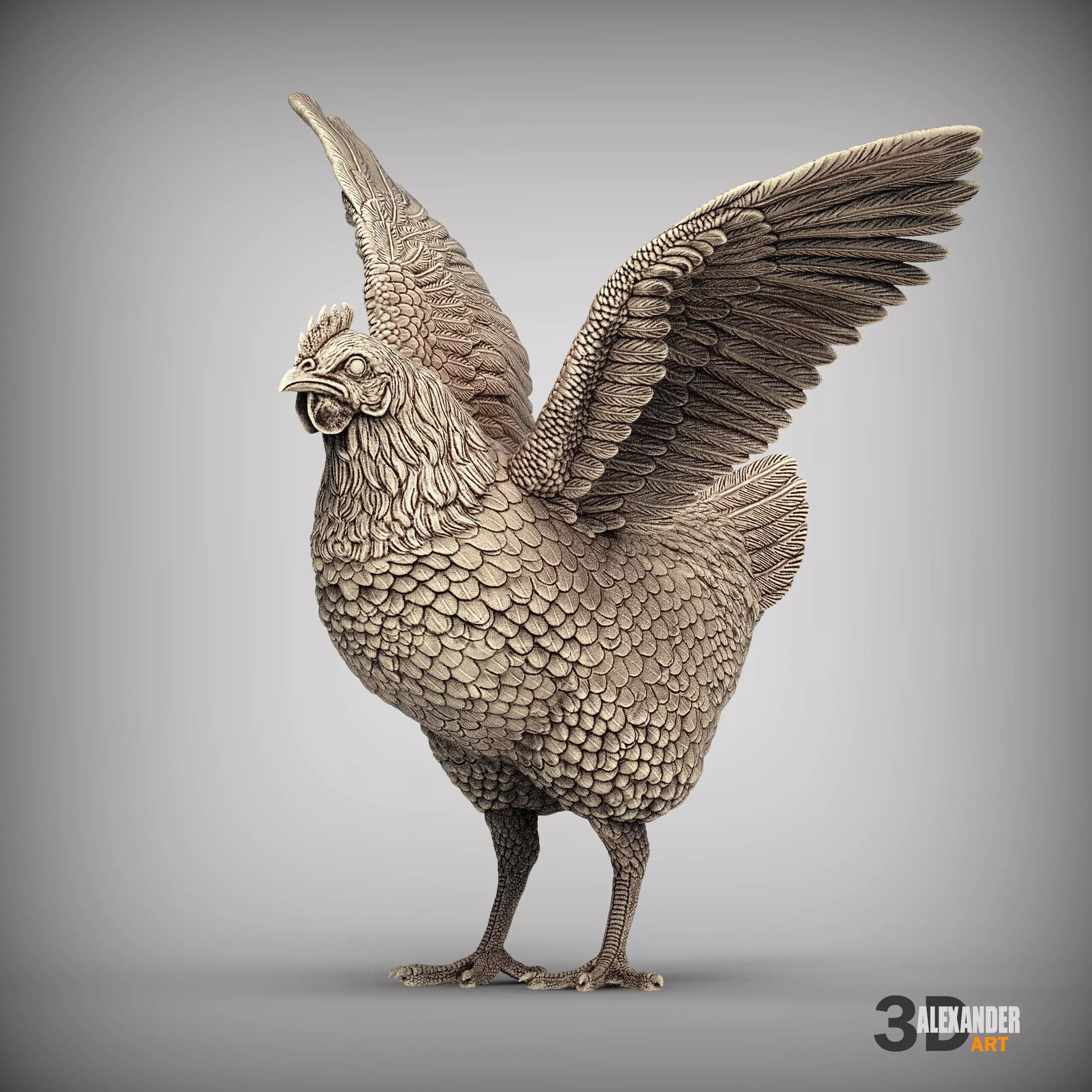 Sculpture hicken for 3D printing. The stl file is verified by netfabb. Model height 100 mm. The size can be easily changed in any printing program. If you love animals, you can use this model to decorate your interior or garden. The sale of electronic files of this model is strictly prohibited.