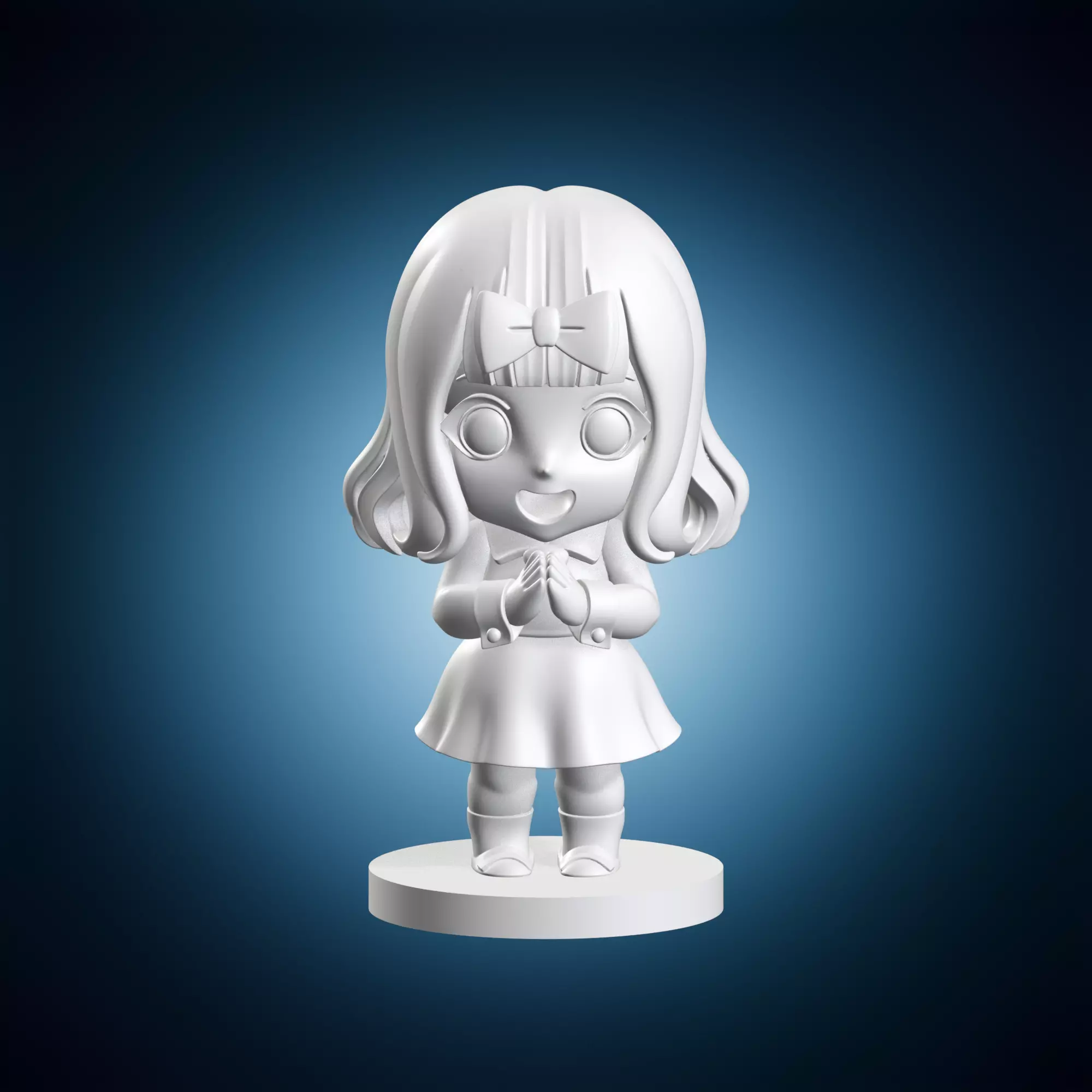 This is a chibi anime style 3d model of Chika Fujiwara. It can be used for various purposes such as video games animation, manga illustrations, or fan art. The model has been designed with attention to detail and texture, giving it a realistic look. The dimensions are suitable for most users, but may need adjustments depending on the specific use case. This 3D model is compatible with popular software like Blender, Maya, and 3ds Max.