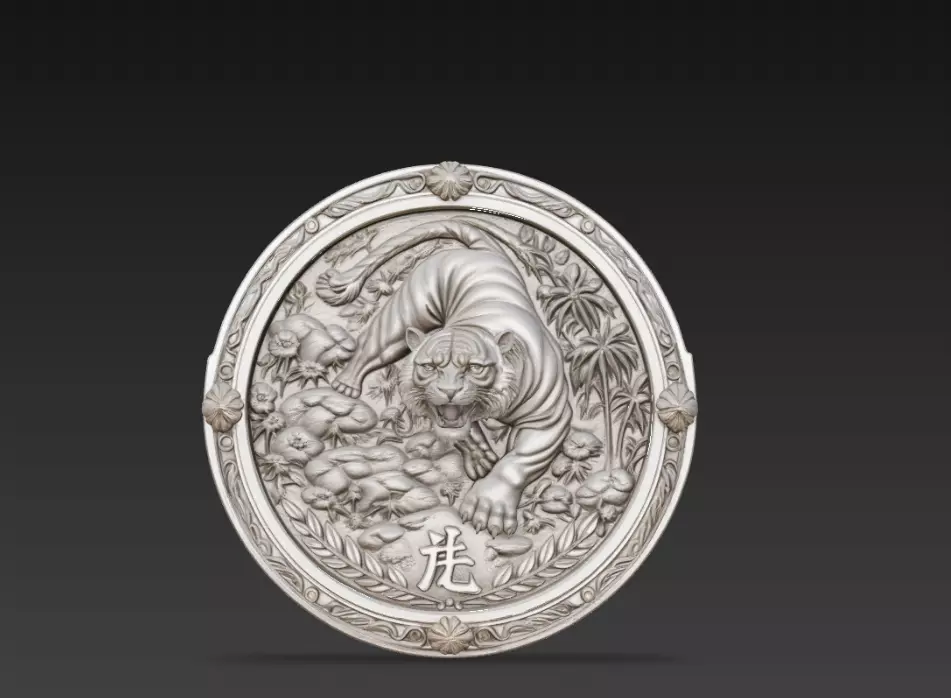 This Chinese Zodiac Tiger Coin Relief 3D Model features the tiger, one of the most powerful animals in the traditional Chinese zodiac calendar. The sculpture is designed as a decorative circular coin-style relief surrounded by elegant ornamental elements.