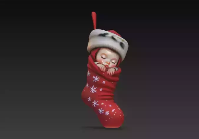 Christmas Creations -Stylised Cute Holiday Sock with Child Baby 3D print model
