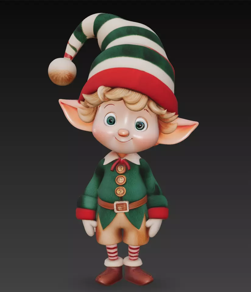 This character was sculpted with attention to proportion and personality, capturing the friendly and mischievous spirit of classic holiday folklore. Its stylized design makes it perfect for CGI animation, collectible figurines, or high-quality 3D printing.