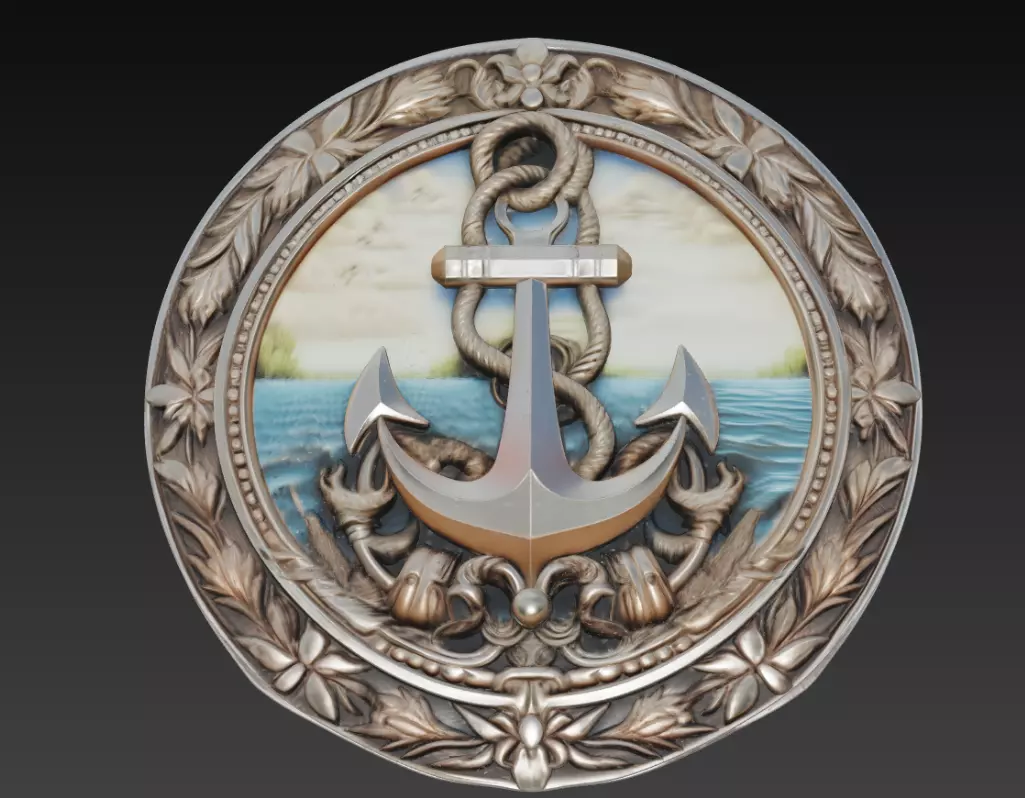 Embodying timeless nautical symbolism, the Classic Anchor Relief 3D Model showcases the enduring strength and balance of maritime artistry.At its center stands a finely sculpted anchor wrapped in rope, framed by elegant floral motifs and ornamental leaves that bring a refined touch of classical sculpture.