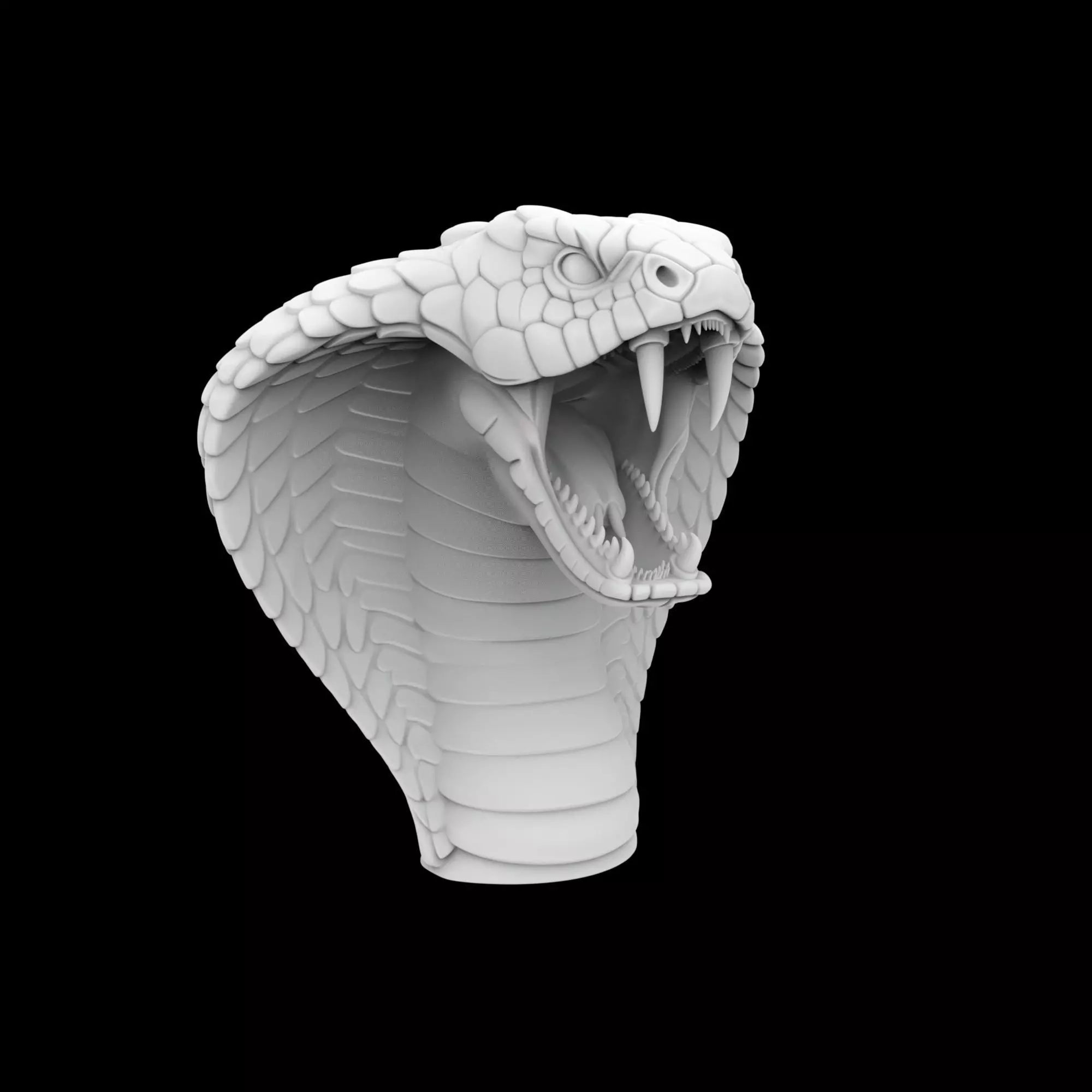 Unleash the primal power of the wild with our mesmerizing Cobra Open Mouth Threat 3D Print Model. This stunning digital sculpture captures the terrifying beauty of a cobra in its most iconic and defensive posture, fangs bared and hood flared. It's a breathtaking piece designed for enthusiasts of exotic wildlife, powerful symbolism, and dramatic artistic expression, promising to be a focal point wherever it's displayed.Expertly modeled for 3D printing, this intricate STL file is engineered for exceptional detail and printability on both FDM and resin printers. Every scale, the menacing curve of its body, and the sharp, venomous fangs are rendered with precision, ensuring a high-resolution outcome. The dynamic pose provides a challenging yet rewarding printing experience, resulting in a truly impressive physical model.This formidable cobra sculpture is perfect for enhancing your home decor, serving as a captivating office piece, or adding an exotic touch to your personal collection. It makes a bold statement on a bookshelf, desk, or display cabinet, inviting admiration and sparking conversation. Its striking presence is ideal for creating an atmosphere of untamed elegance.Looking for an original gift? This Cobra Open Mouth Threat 3D Print Model is an unparalleled choice for snake enthusiasts, wildlife admirers, fantasy art collectors, or anyone who appreciates unique and powerful animal sculptures. It’s a thoughtful and creative present that allows the recipient to bring a piece of the wild into their own space.This is a digital STL file available for instant download, allowing you to begin your printing adventure immediately. Embrace the thrill of creating your own formidable cobra.Please Note: This STL file may require pre-printing preparation, including support analysis, positioning adjustments, thickness verification, specific settings for your printer and filament, as well as other technical adjustments that may be necessary depending on your equipment and printing method.