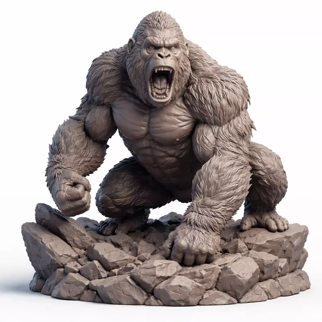 Stunning 3D model of a colossal gorilla in a powerful attack stance, sculpted with an incredibly high level of anatomical detail and a ferocious expression. Every muscle, fur texture, and element of the rocky base has been meticulously crafted to create a striking and realistic piece.Ideal for collectors, dioramas, fantasy figures, geek decor, or artistic painting projects. The model is optimized for 3D printing, delivering excellent results in both resin and filament, with high definition even at medium and large scales.Perfect for those seeking an imposing figure that stands out for its strength, dynamism, and visual quality.