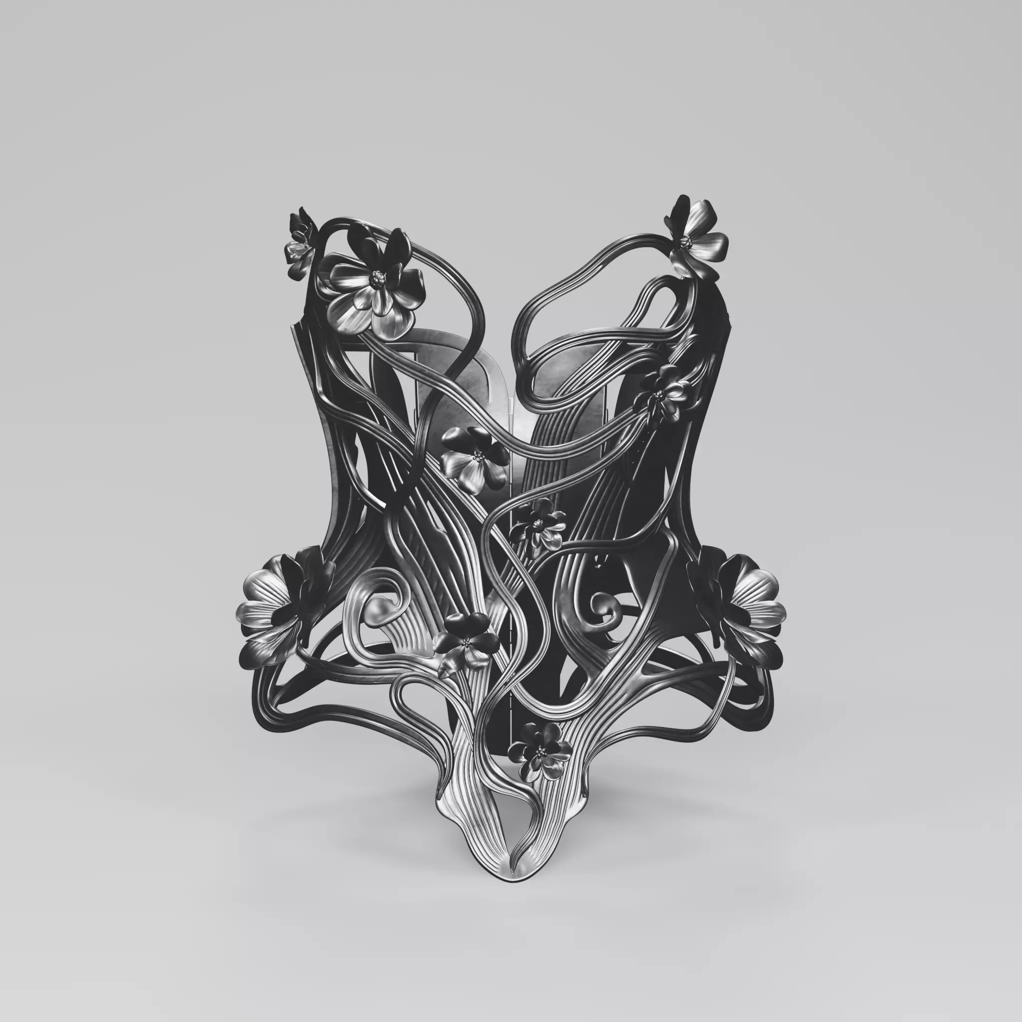 - Featuring elegant organic curves, floral elements, and flowing ornamental lines, this corset is perfect for fashion design, cosplay, fantasy characters, or display pieces.Features: