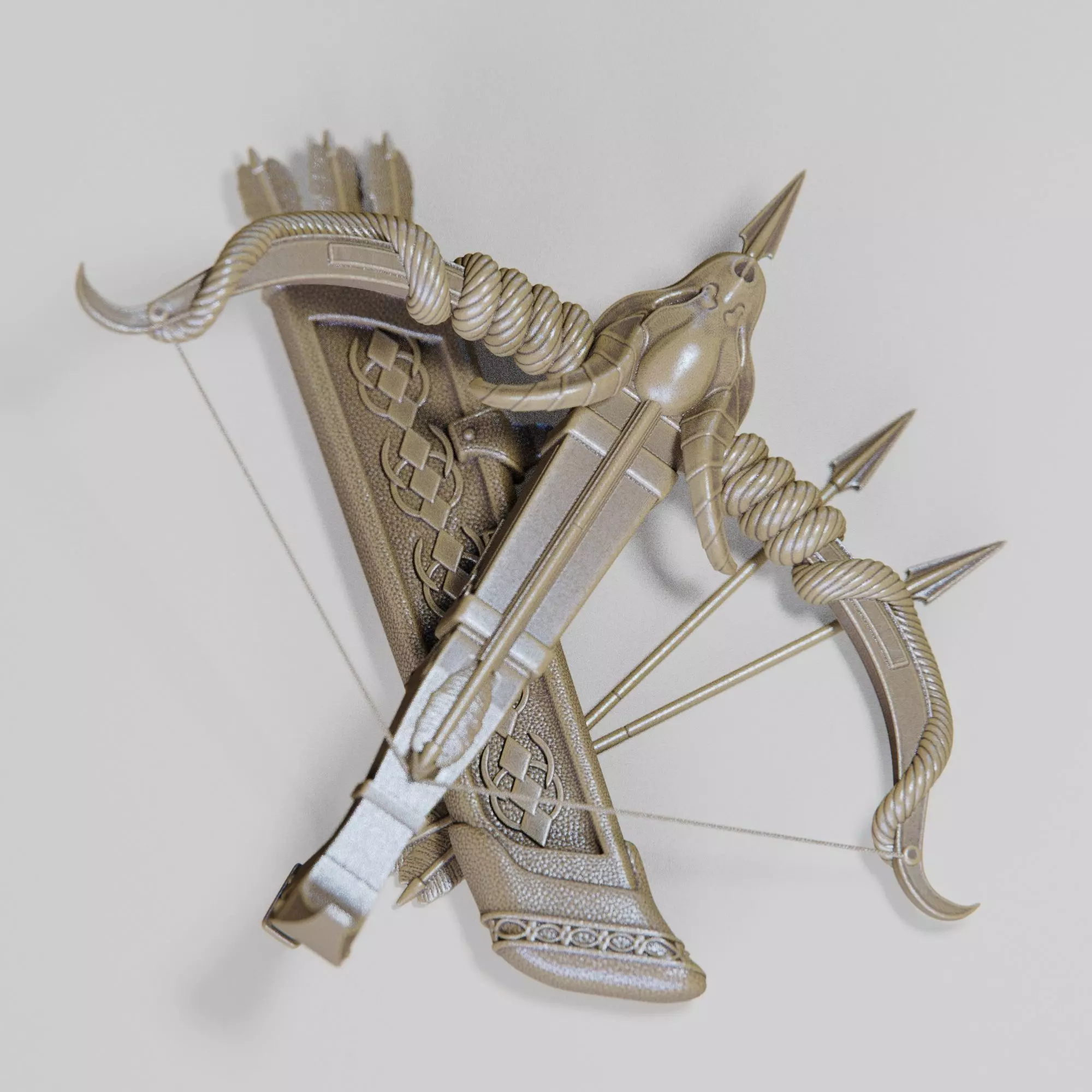This package includes three detailed 3D models: a crossbow, a quiver, and arrows, suitable for rendering, printing, or game assets.