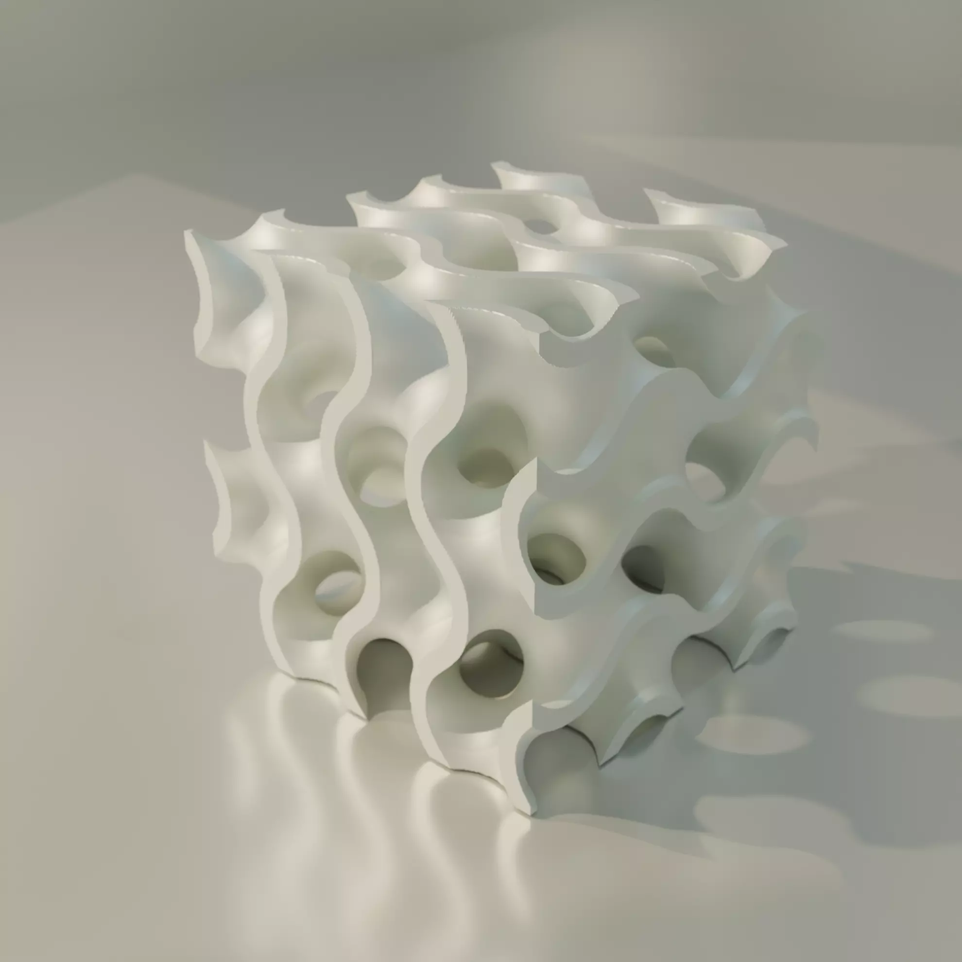 Gyroid Cube: Complex Lattice Structure for 3D PrintingThis unique Gyroid Cube is more than just a model; it's the perfect blend of art and engineering. A gyroid is a mathematically defined, continuous, triply periodic minimal surface that creates a stunning, interconnected lattice structure. Ideal Use:This model is extremely versatile and can be used in a variety of industries: