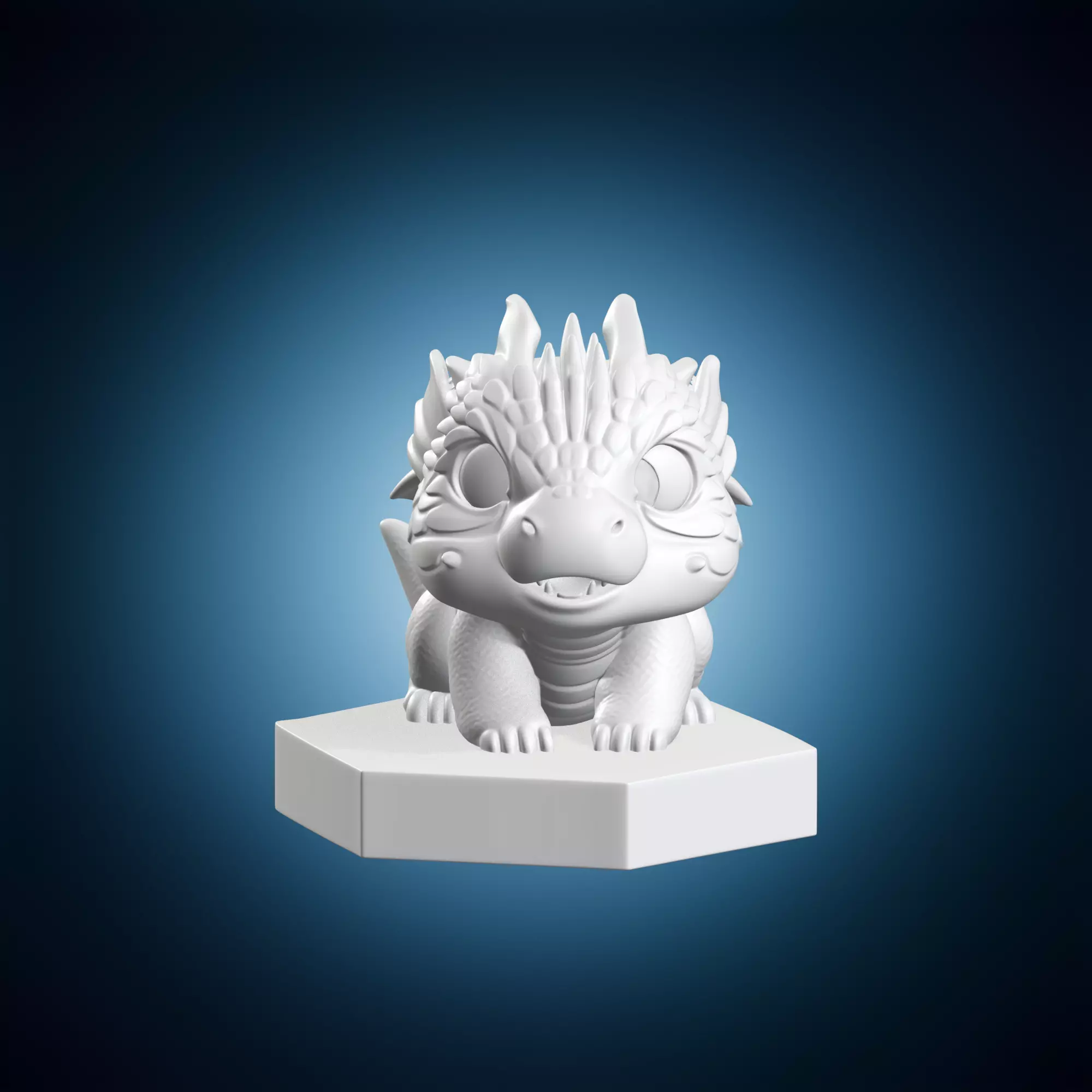 A whimsical and enchanting sculpture of a cute baby dragon walking, this piece is sure to capture the hearts of all who see it. The miniature figurine measures approximately 6 inches tall and sits atop a small pedestal base. The statue's creator has skillfully crafted intricate details into every aspect of the model, from the baby dragon's big round eyes to its tiny nose and mouth. The level of detail is remarkable, making this piece a must-have for any fan of fantasy art or collectible figurines.