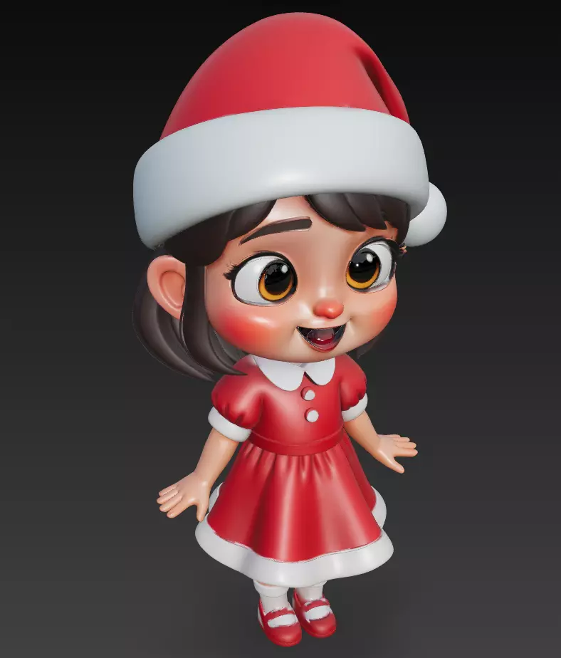 The Cute Christmas Girl – Stylized Holiday Character 3D Model embodies the warmth and joy of the festive season. Dressed in a classic red-and-white Christmas outfit with a matching Santa hat, she brings a sense of cheerful innocence and holiday magic to any project.