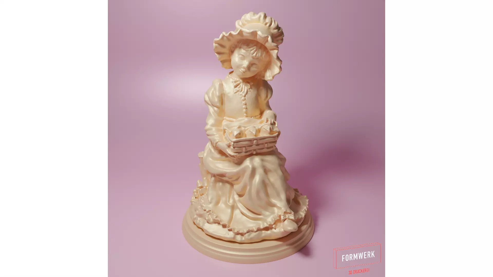Cute Doll - 3D Print - 3D ScanThis 3D model is a refurbished and rebuilt scan of a decade old porcelain figure. The figure is supposed to represent a happy girl in the forest, who is sitting on a log and has young birds in a carrying basket.It is ideal for decoration in your living room, or as a render model in your 3D scene. We recommend painting with acrylic paints so that the many details come into their own.The model can be printed out on any 3D printer, but because of the many overhangs it requires generous support structure.