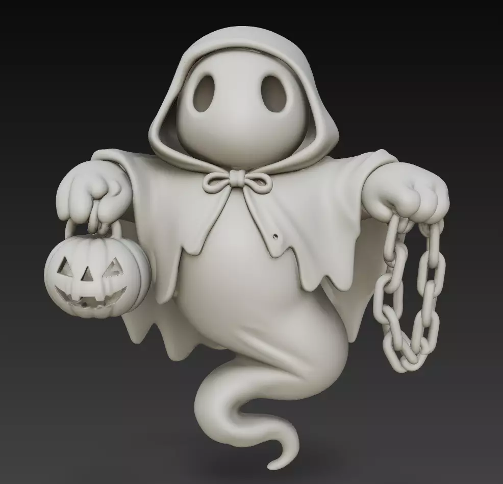 The smooth surfaces, soft folds of the fabric, and clean silhouette make this character especially suitable for toy design, decorative figurines, Halloween-themed collections, children’s products, and stylized 3D scenes. Its friendly appearance avoids horror elements, making it ideal for family-friendly seasonal projects.