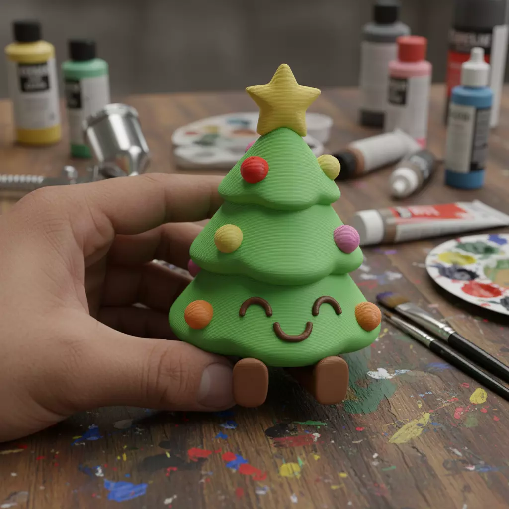 Designed in a fun chibi style, this model features chunky rounded layers, colorful baubles, and a big gold star on top. It is the perfect easy-to-print decoration for your workspace, a cute stocking stuffer, or a unique addition to your winter village.