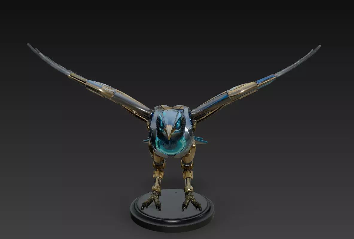 Every element—from claw articulation to alloy wing joints—has been sculpted with attention to realism and technical beauty. This model fits perfectly into CGI rendering, 3D printing, AR/VR visualization, and futuristic decorative art setups.