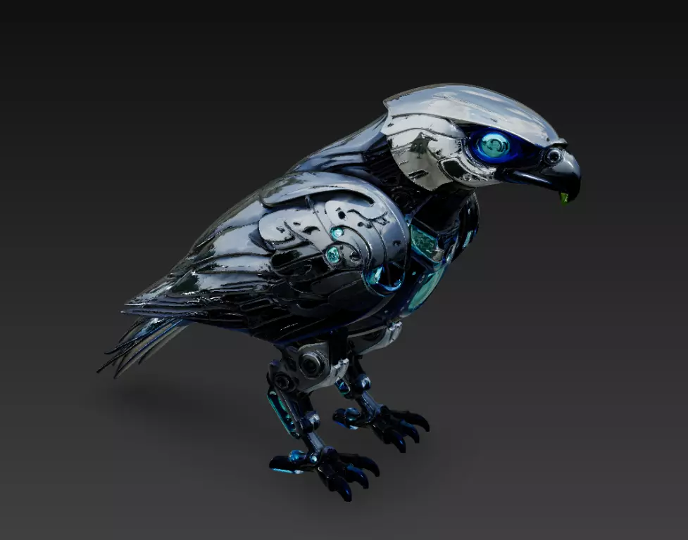 Perfect for animation, concept art, or cyberpunk environments, this falcon symbolizes freedom, intelligence, and advanced design — a masterpiece of digital craftsmanship ready for any creative world.