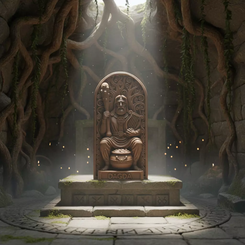 This statue or sculpture represents the Celtic god Dagda. It has been modeled for 3D printing, requiring little to no support and is a low-difficulty model to print.
