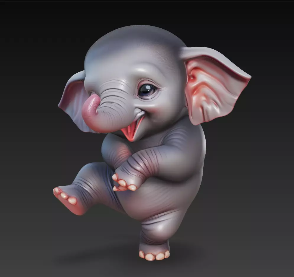 The Dancing Baby Elephant 3D Model radiates pure joy and charm — capturing a playful pose that brings life and motion to any stylized scene.With its big expressive eyes, rounded features, and soft sculpted details, this elephant is perfect for CGI animation, children’s media, or collectible 3D printing.