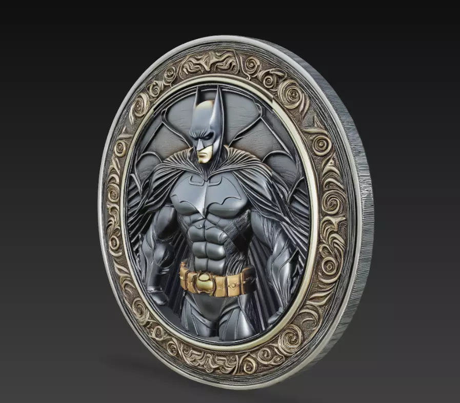 This Dark Vigilante Hero Coin Relief 3D Model features a powerful comic inspired vigilante character designed as a detailed collectible coin style medallion.