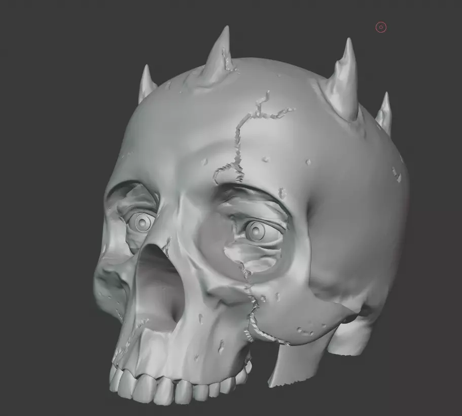 • I initially started with a regular human skull 3D file, added the horns and eyes, then flew to Blender to clean it up. For this being my first 3D object I'm pretty content with the way it turned out. Again, hope you all like and please give me feedback and constructive criticism, it will only make my artwork better in the near future.