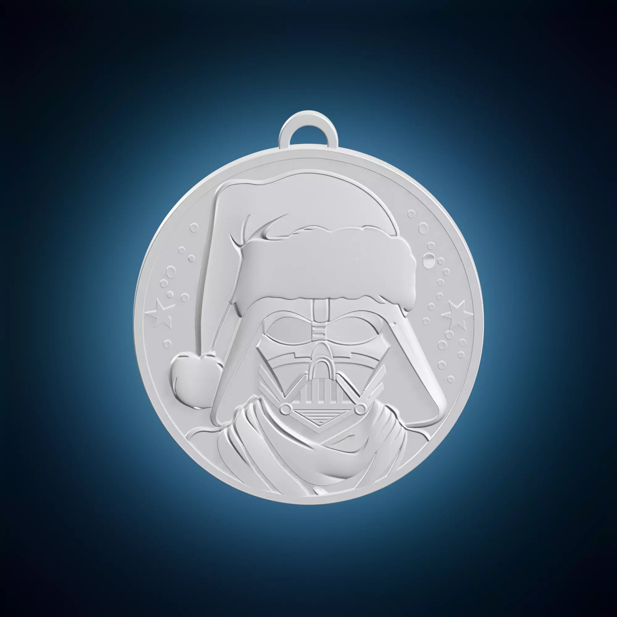 A 3D model of Darth Vader wearing a Santa hat and holding a Christmas ornament. Perfect for festive decoration or cosplay. The model is designed to be detailed and realistic, with textured surface and accurate facial features. It can be used in various applications such as animation, gaming, or architectural visualization.