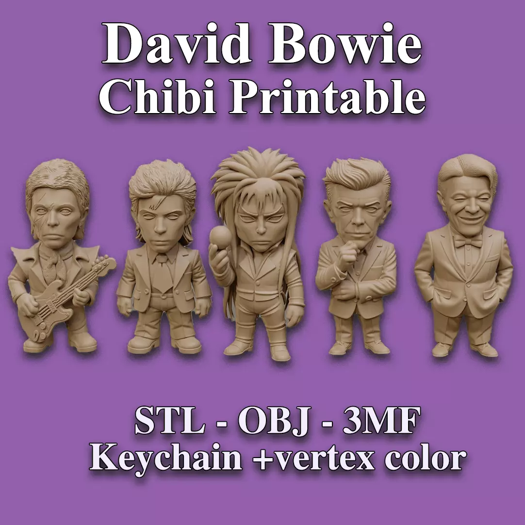 David Bowie – 5 Chibi Fan Art Versions (Figure & Keychain)