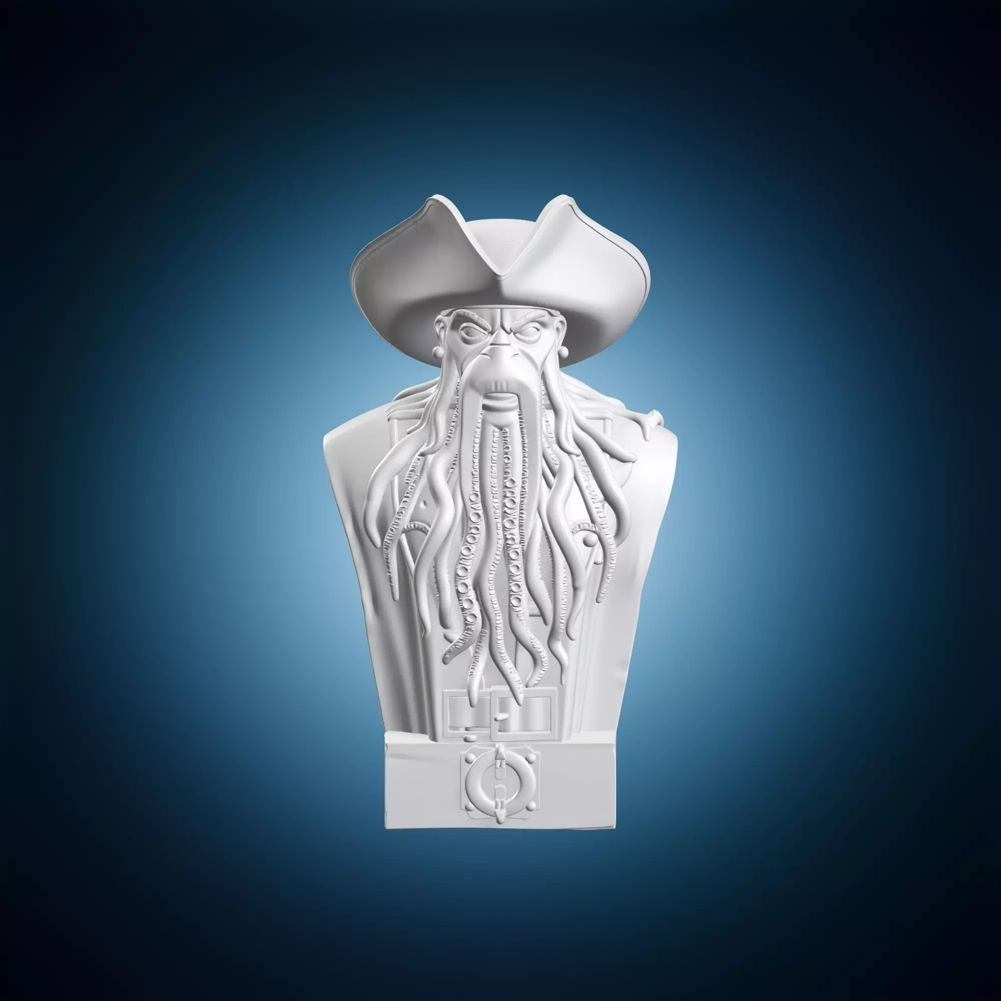 A detailed sculpture of Davy Jones, the infamous pirate captain, made for artistic purposes. The bust is crafted to capture the character's essence and has been designed with precision and care. It is a unique piece that can be displayed in any room or used as a decorative accent. This sculpture is perfect for fans of pirate culture or those who appreciate fine art. Davy Jones Pirate Bust Sculpture is a must-have for anyone looking to add some swashbuckling flair to their collection.