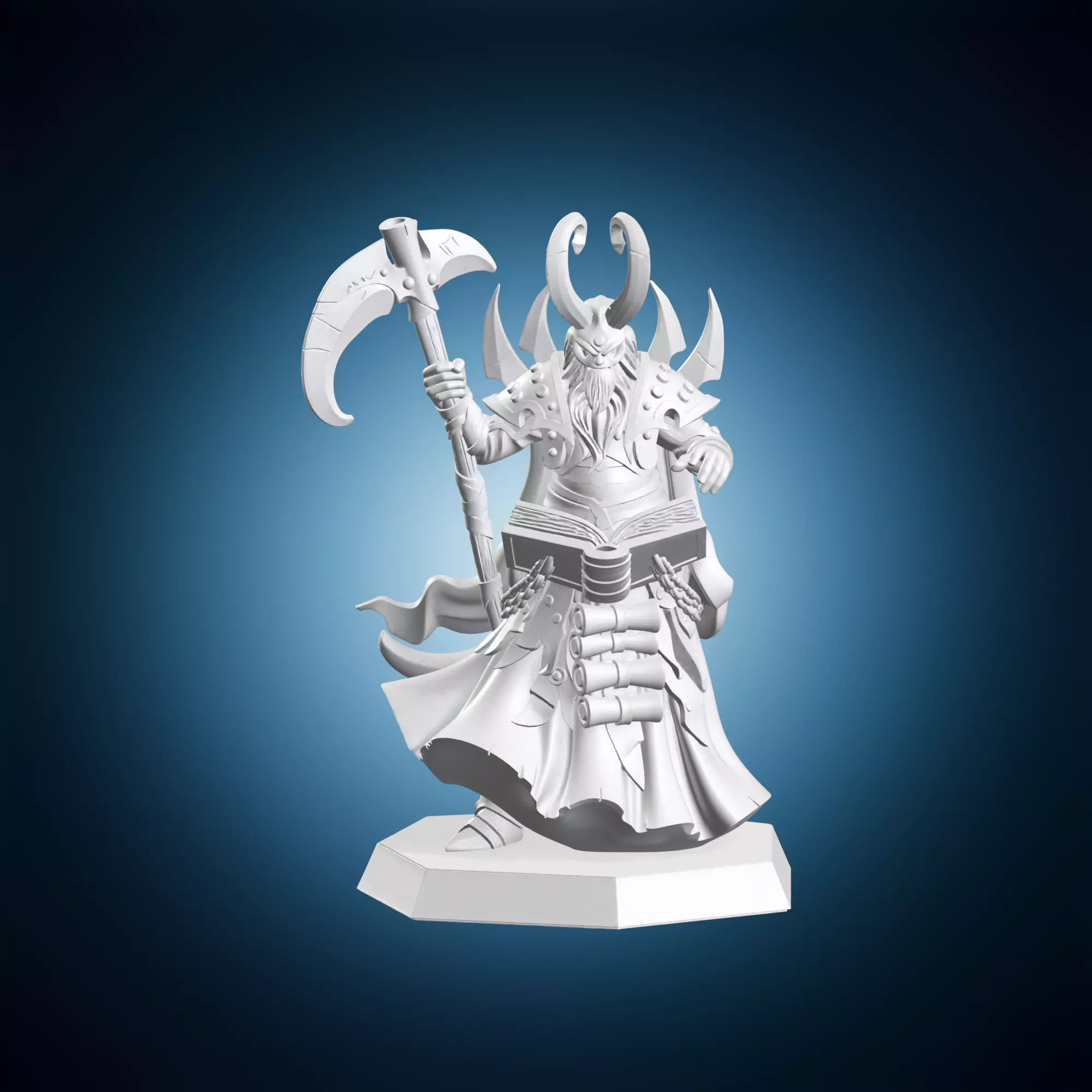 A detailed 3D model of a miniature character from Dungeons & Dragons, specifically designed as a 'Soul Harvester', showcasing its intricate details and design. This miniature is mounted on a base, providing a stable foundation for display or use in digital projects. The model is suitable for various applications, including gaming, illustration, and animation. It can be easily scaled and edited to fit different needs. The 3D model is created from the D&D miniature, ensuring accuracy and faithfulness to the original design.
