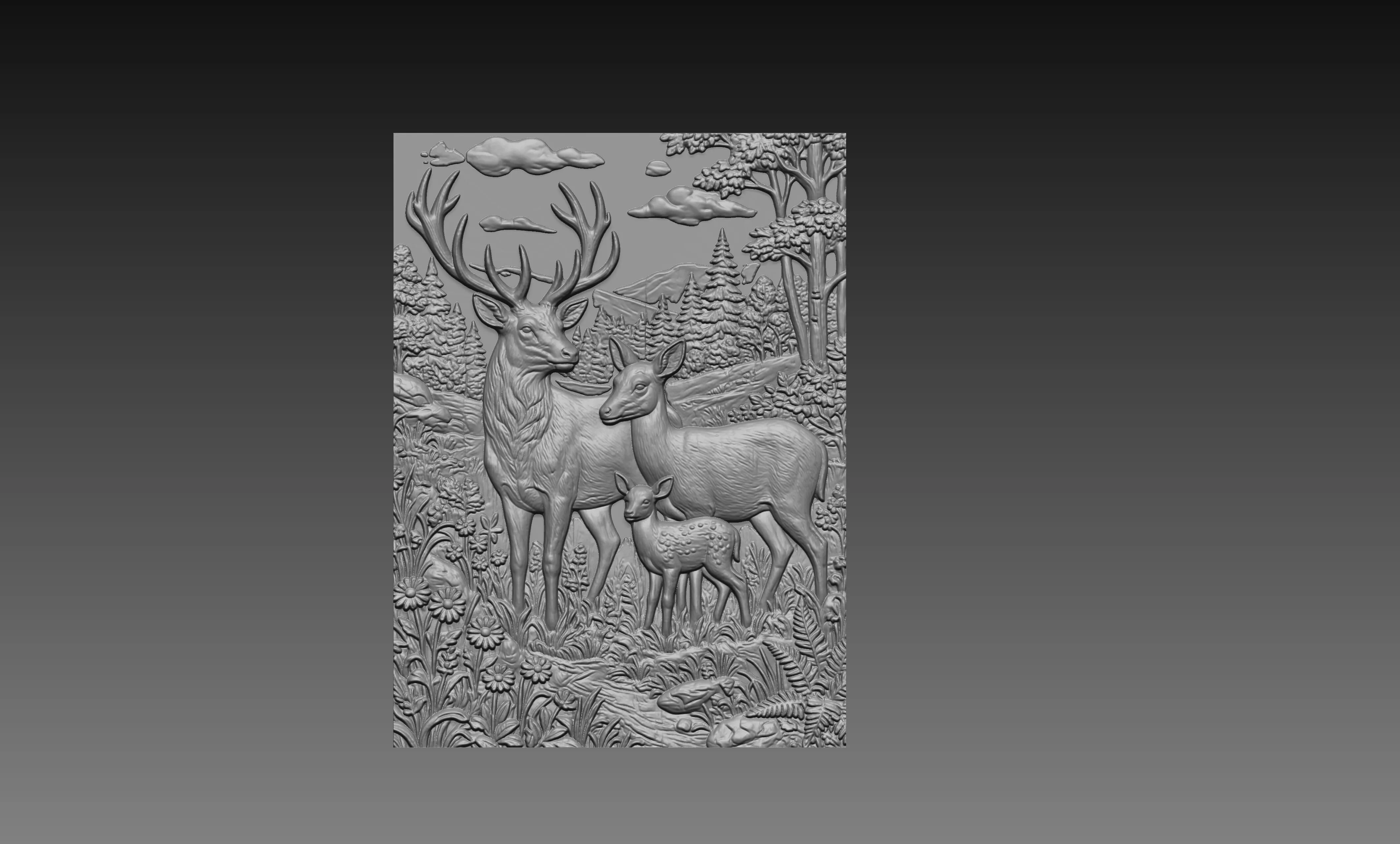 Designed with layered depth and fine detail, this deer relief model highlights graceful forms, soft natural textures, and a vibrant meadow setting, making it ideal for creating beautiful CNC carvings, wood panels, and 3D printing projects.