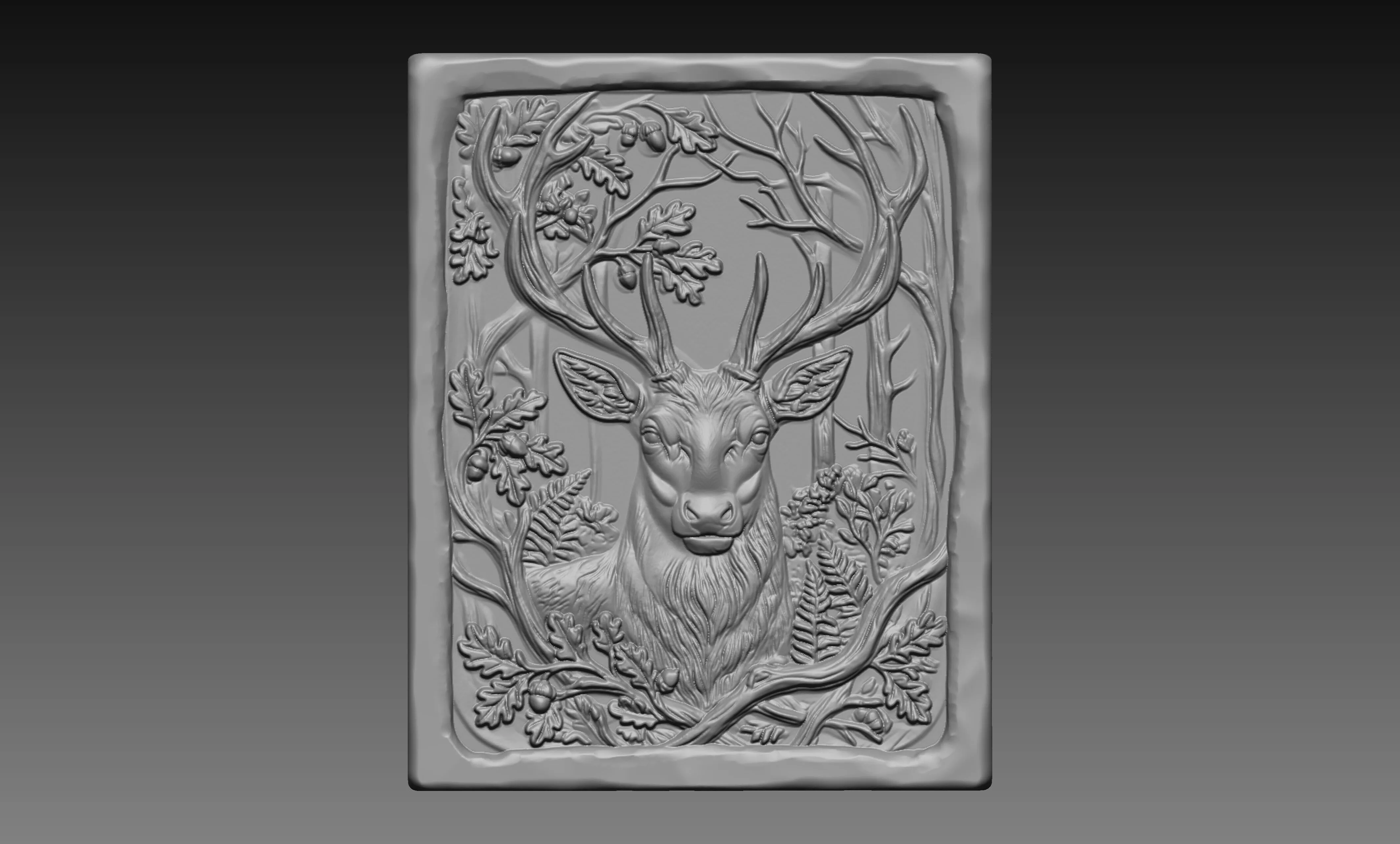 deer stl, deer portrait stl, stag relief stl, woodland stl file, oak leaves stl, cnc carving file, deer wall art, forest decor stl, 3d relief model, router engraving, laser cut stl, rustic decor stl, animal relief stl