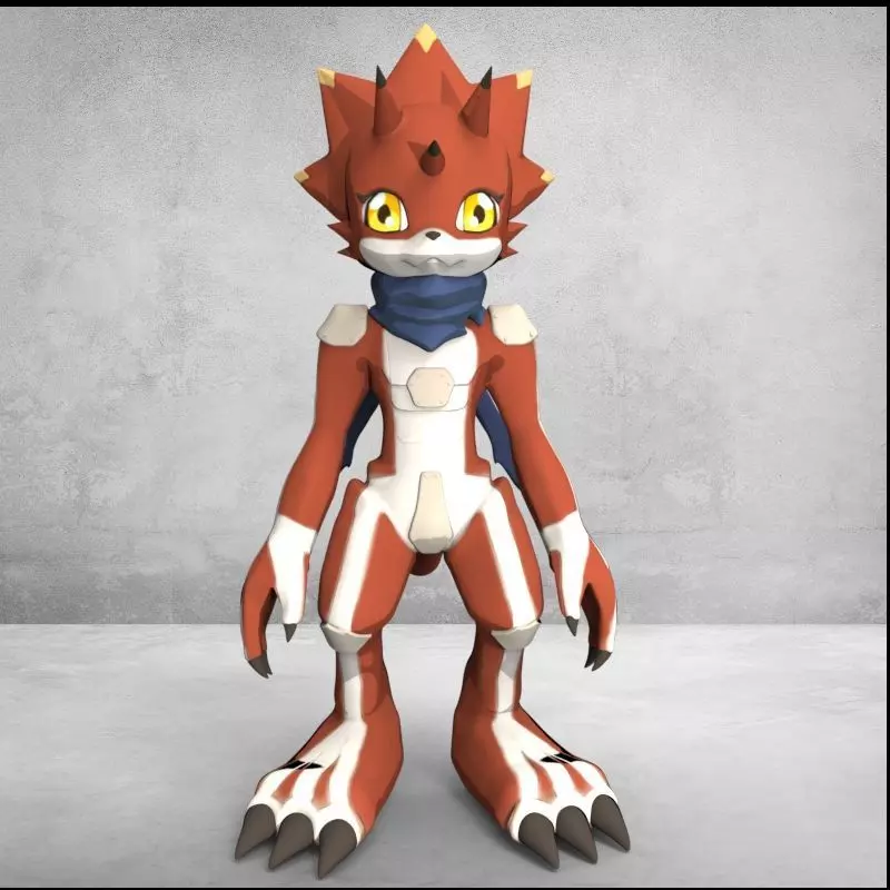 BetelGammamon is a Dragon Man Digimon. It is a form in which Gammamon grew up, and its body turned red due to the flames of its blazing spirit. Its agility has increased, and its power and speed in close combat have risen even more. The power of its attacks doubles as the excitement of its emotions grows.