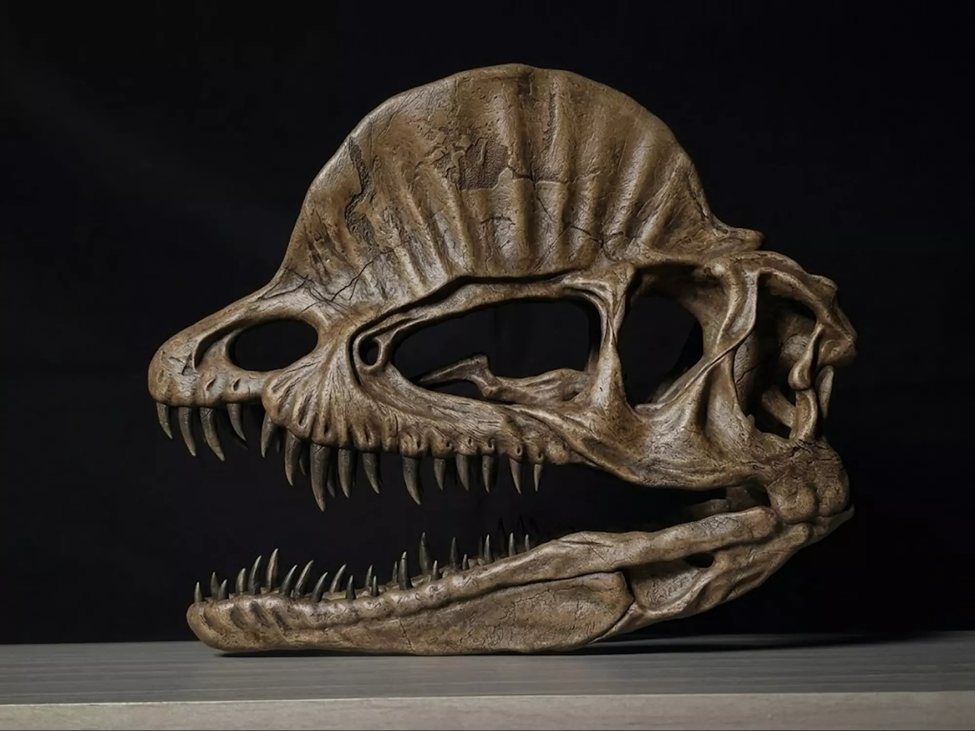 This is a life size 3d digital model skull of a Dilophosaurus. OBJ, ZPR, PLY, FBX and STL files. jaw is seperated.