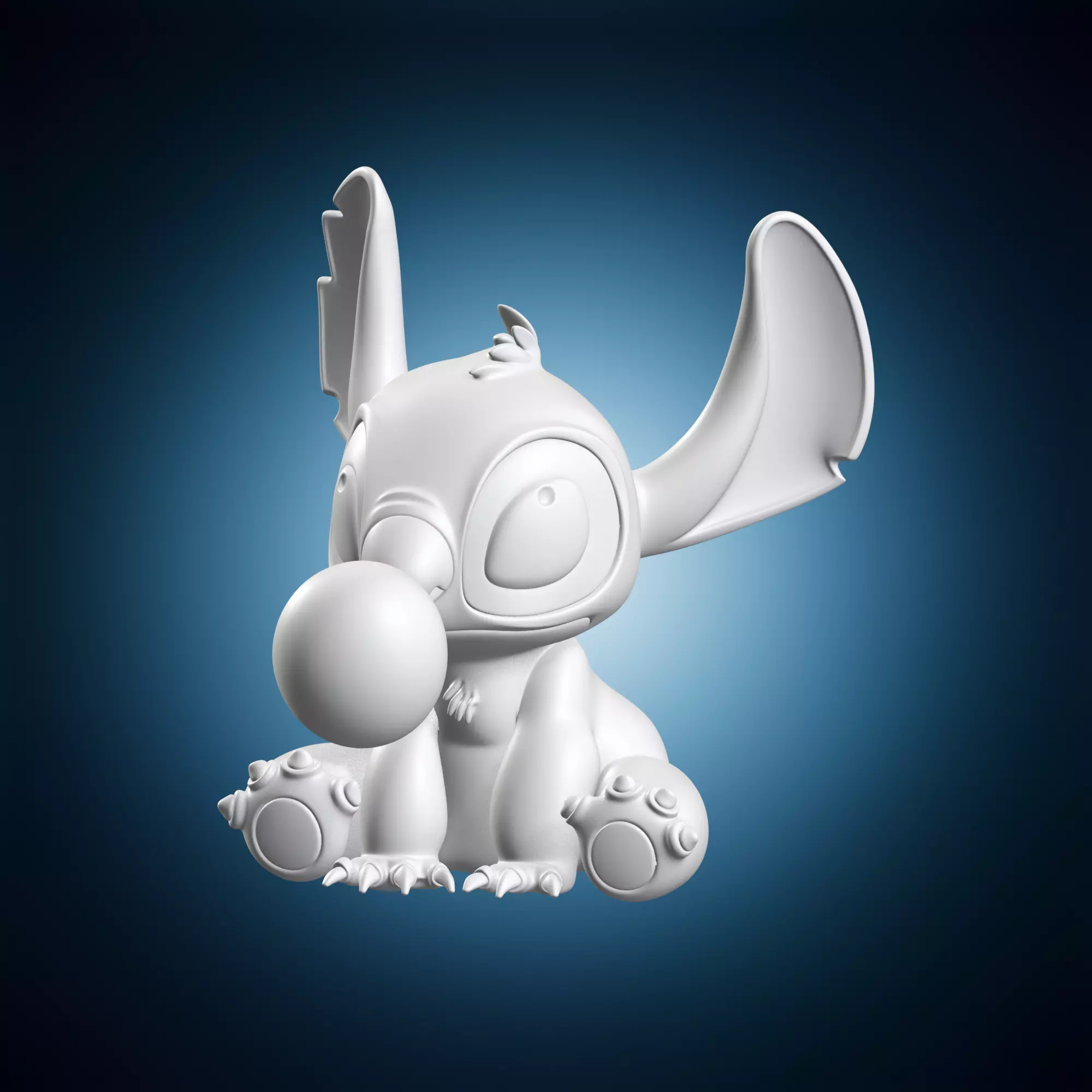 A colorful 3D model of Disney's beloved character Stitch blowing bubble gum. This digital figure is perfect for collectors and fans of the animated film Lilo & Stitch. The model features intricate details and textures, making it suitable for printing or use in digital art projects.