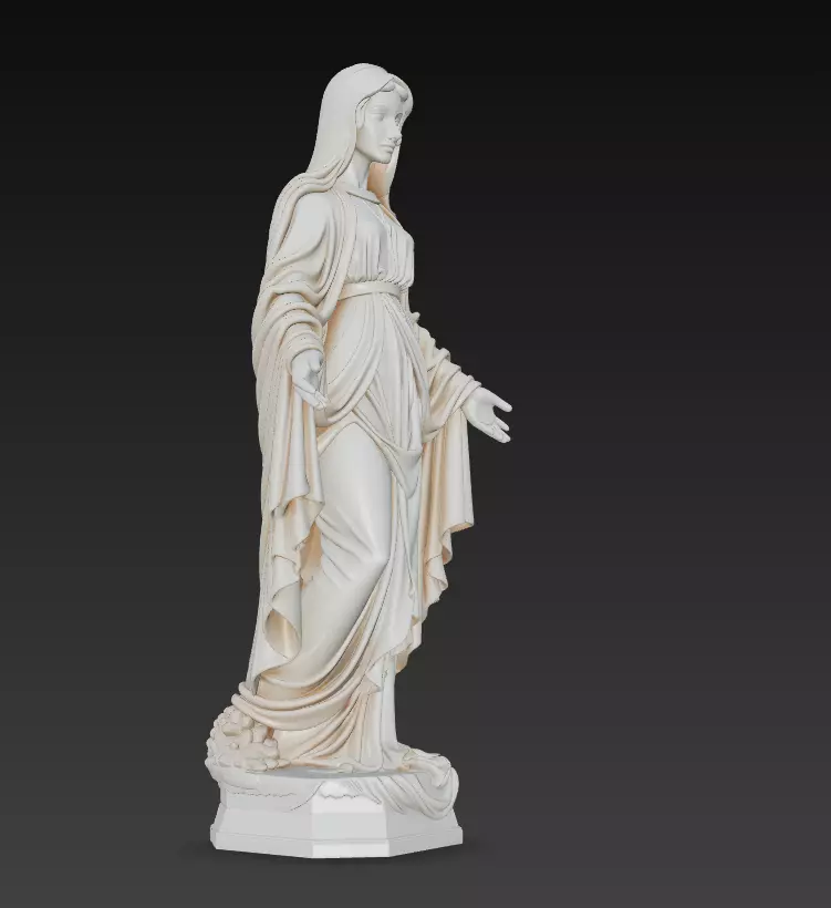 A graceful representation of spiritual calm and devotion — the Divine Serenity Statue embodies harmony through realistic form and classical sculpting technique.The soft drapery, serene expression, and balanced posture evoke peace and sacred energy, making this model ideal for religious-themed CGI, art installations, and high-quality 3D printing.
