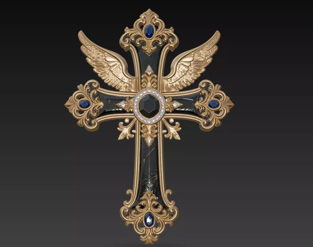 Perfect for 3D printing, religious-inspired décor, fantasy environments, CGI scenes, magical artifact collections, and baroque interior visualization. Its clean elegance, heavenly wing motif, and premium jewel detailing make it a striking centerpiece for sacred, angelic, or high-fantasy themed projects.