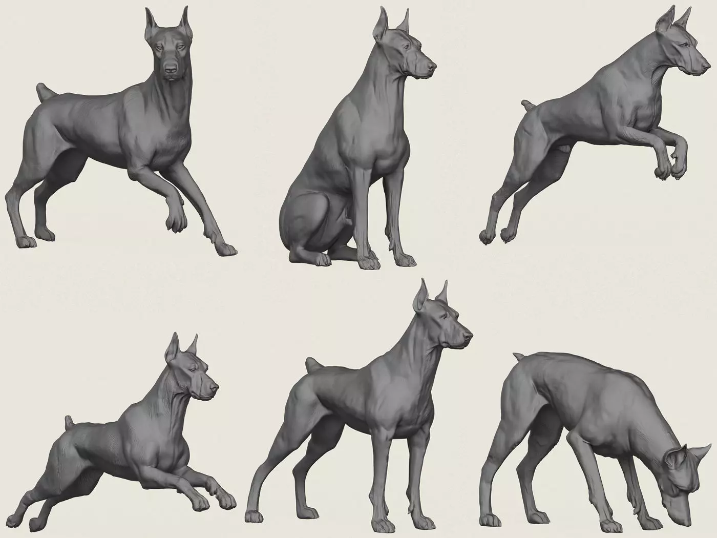 Doberman Dog Pose Collection, Print Ready 3D Models.