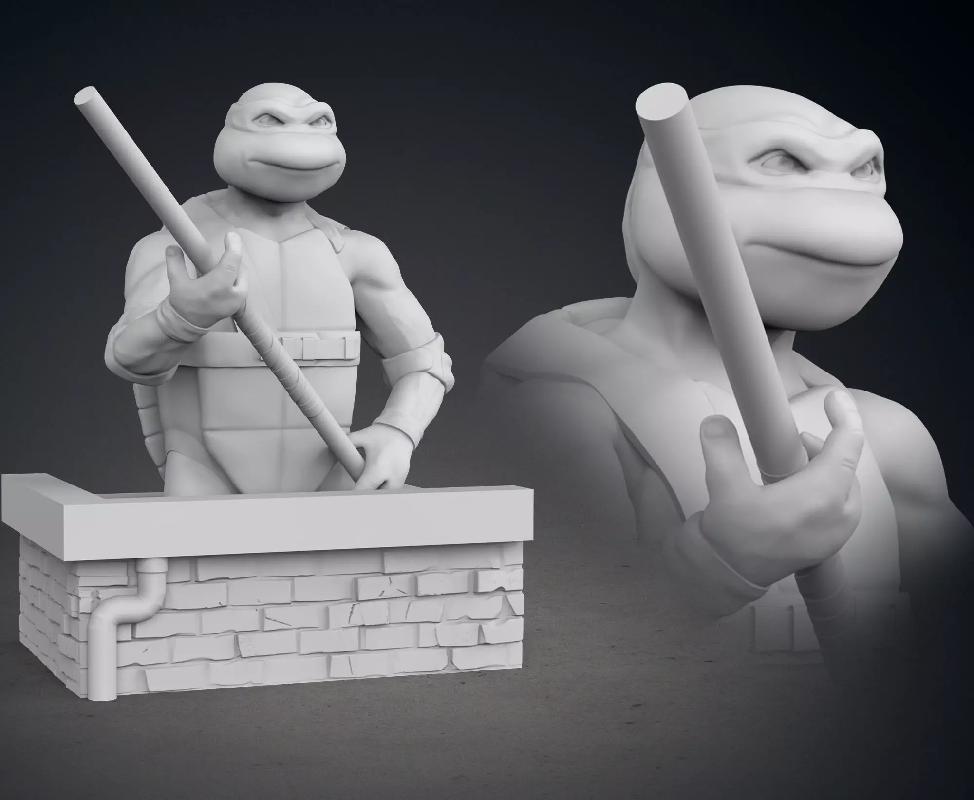 This piece represents Donatello, one of the Teenage Mutant Ninja Turtles depicted in the 1990 movie.