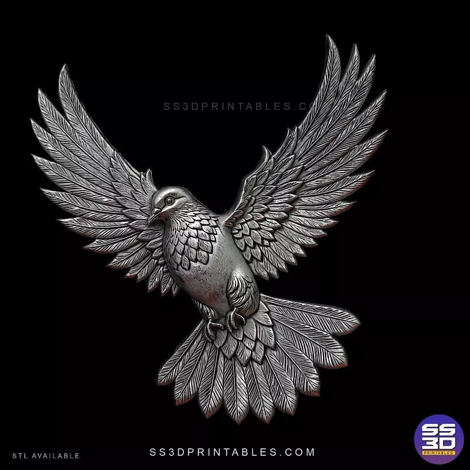 Dove Bas-Relief STL, exclusively crafted by SS3DPRINTABLE. Designed with meticulous attention to feather detail, layered depth, and dynamic wing spread, this model captures the grace of a bird in flight—perfect for both decorative bas-relief and figurine applications.