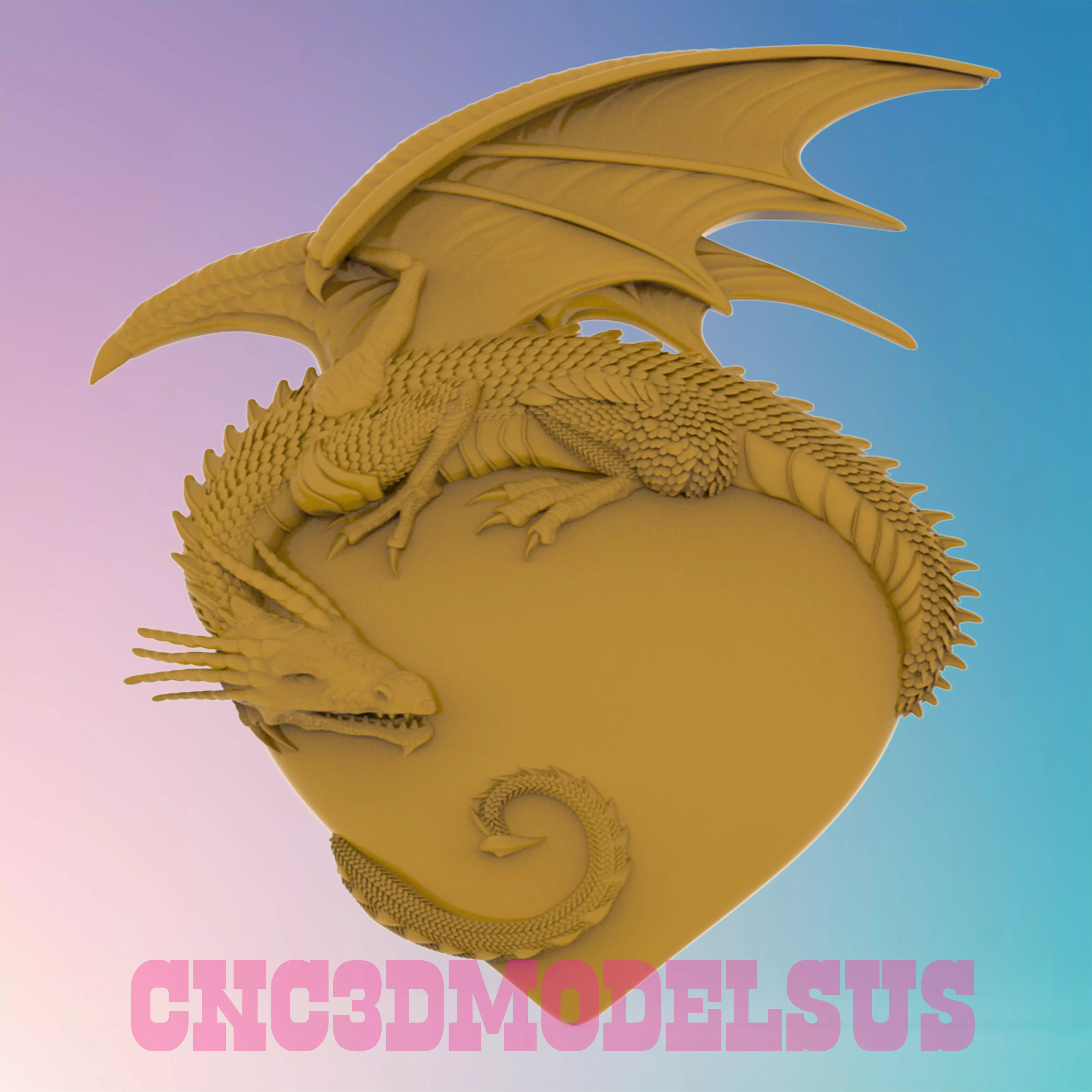 Dragon on the Heart 3d stl, Wall decor, Stl File For CNC Router Engraver, Carving Machine, Relief, Artcam, Aspire