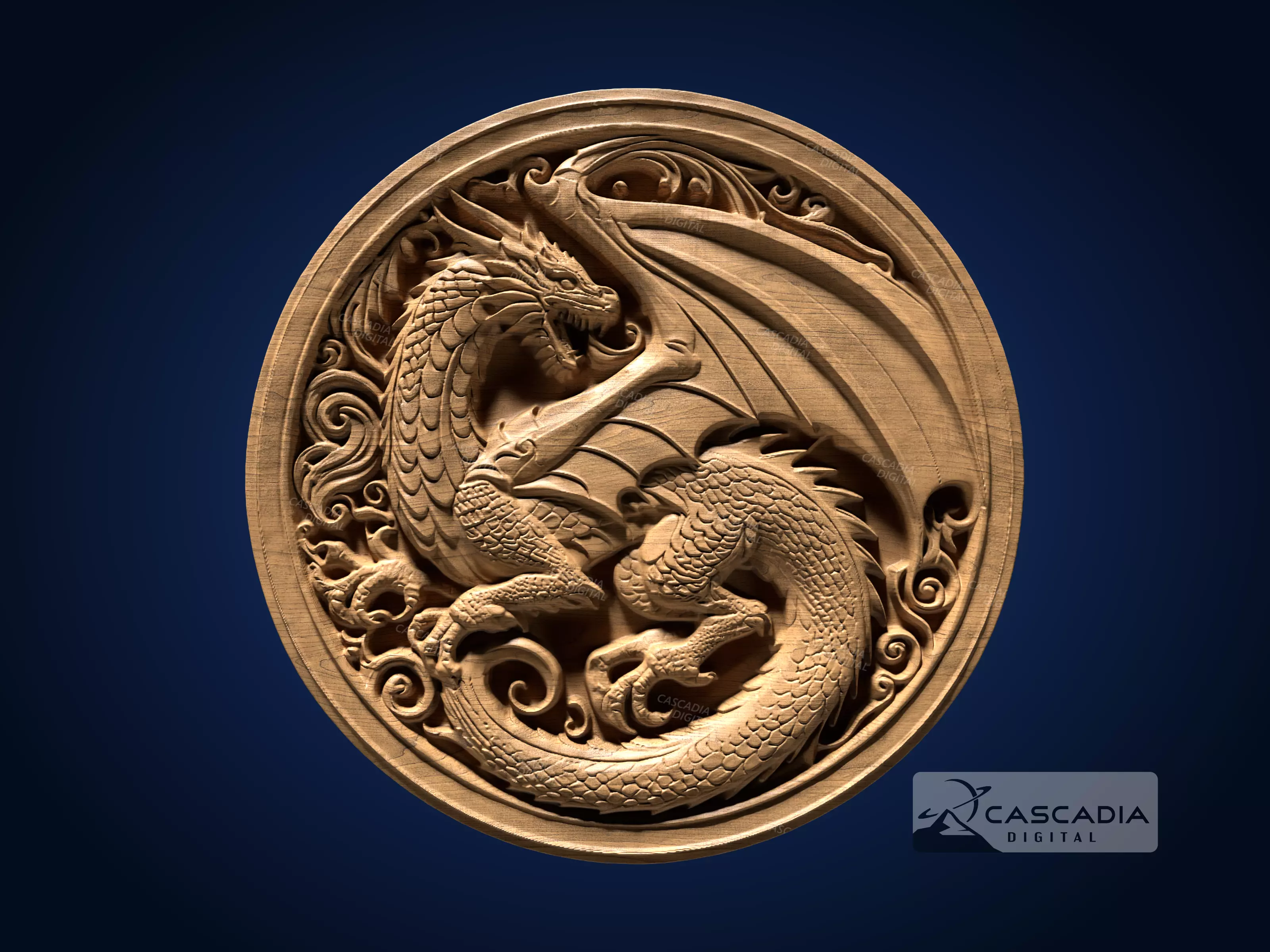 Dragon Round - CNC Router Carving Casting Fantasy Animal 3D print model