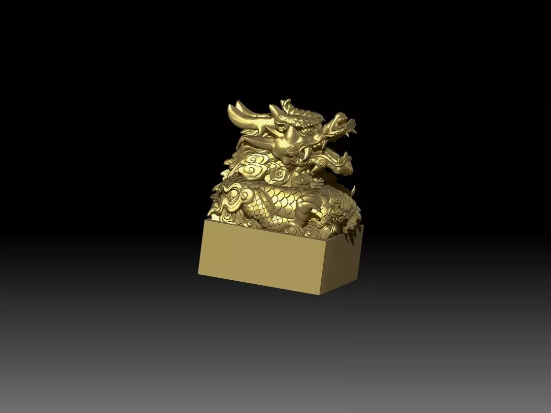 This Dragon Seal 3D model features a fierce and intricate dragon design, symbolizing power, protection, and good fortune. The detailed dragon coils around the seal's edge, creating a dynamic and bold aesthetic, making it an excellent piece for cultural or decorative purposes.